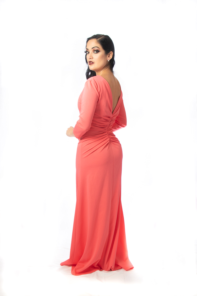 Vestido sirena largo reversible, fruncido en la espalda o en el escote.