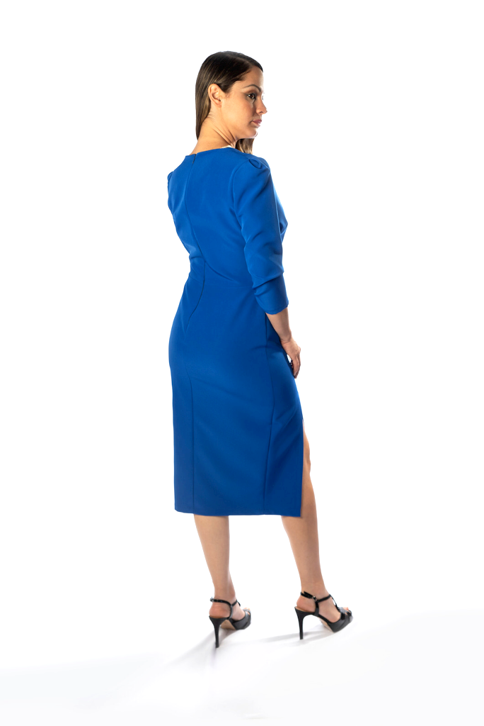 Vestido midi con abertura lateral y detalle de botones en Dorado