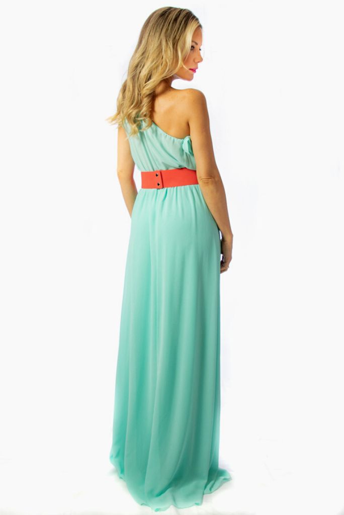 Vestido confeccionado en gasa, largo color Verde agua asimétrico.