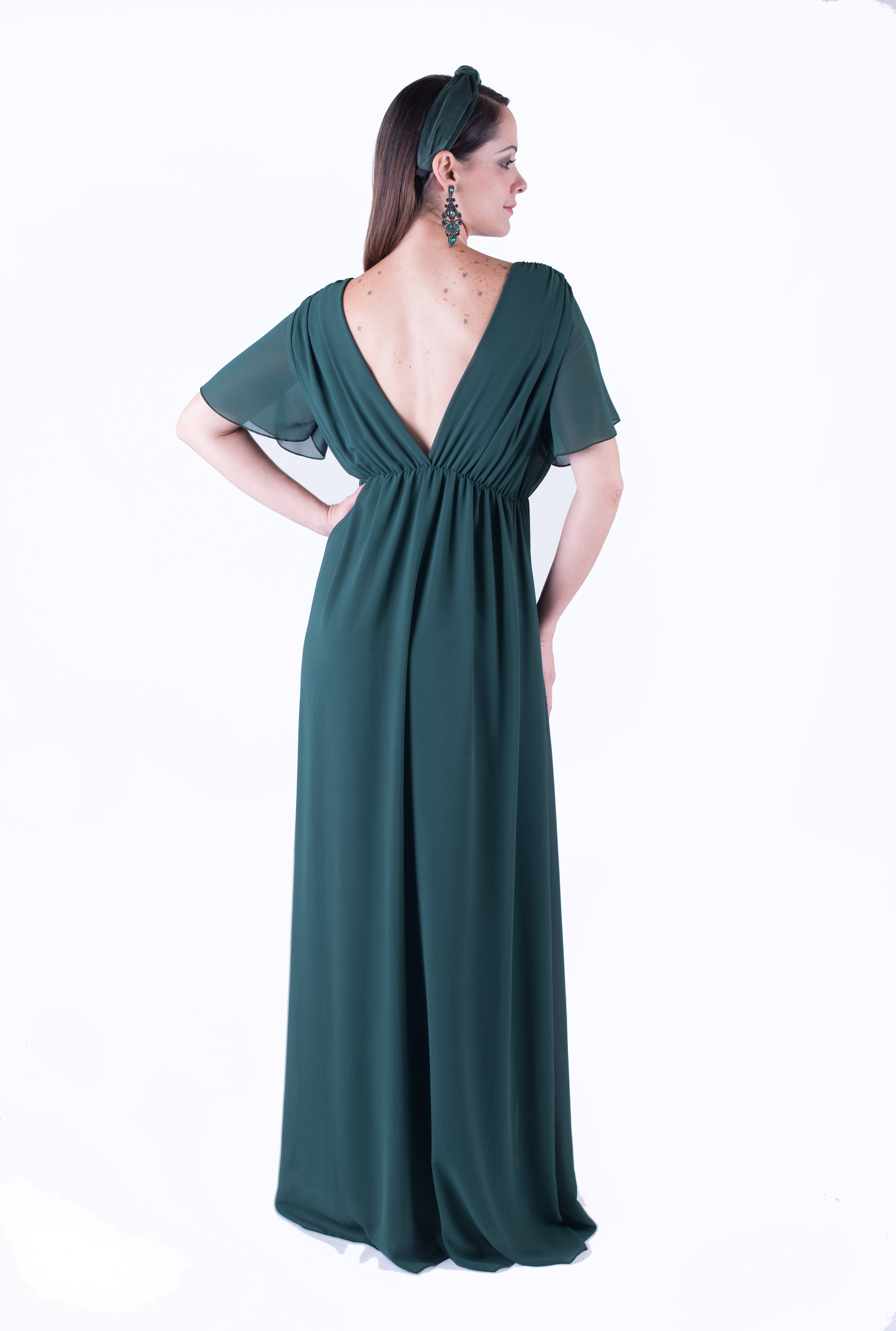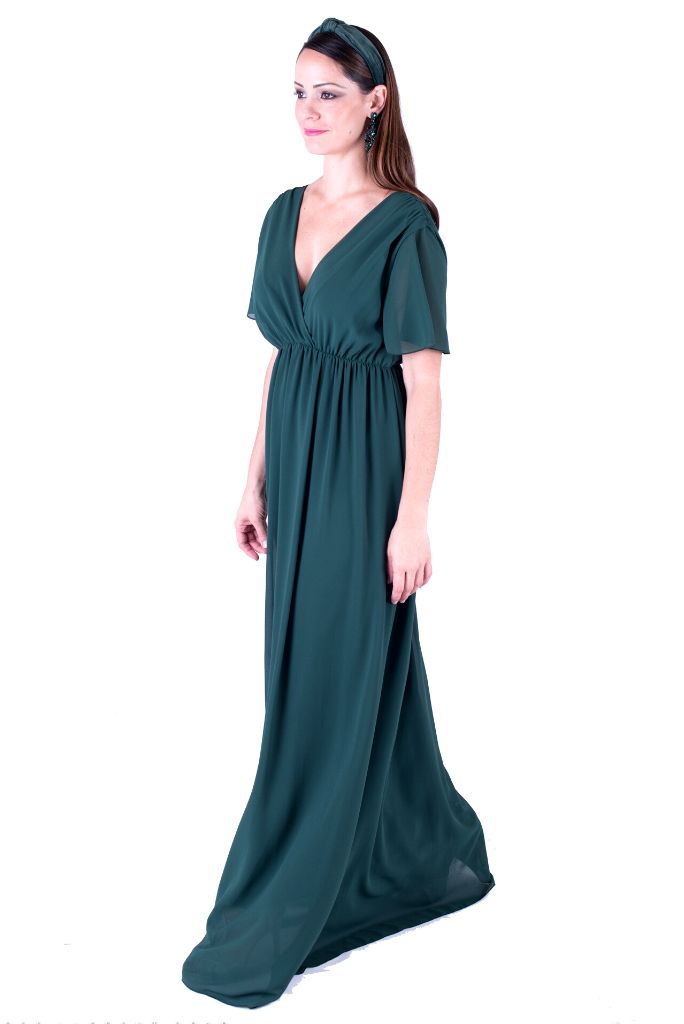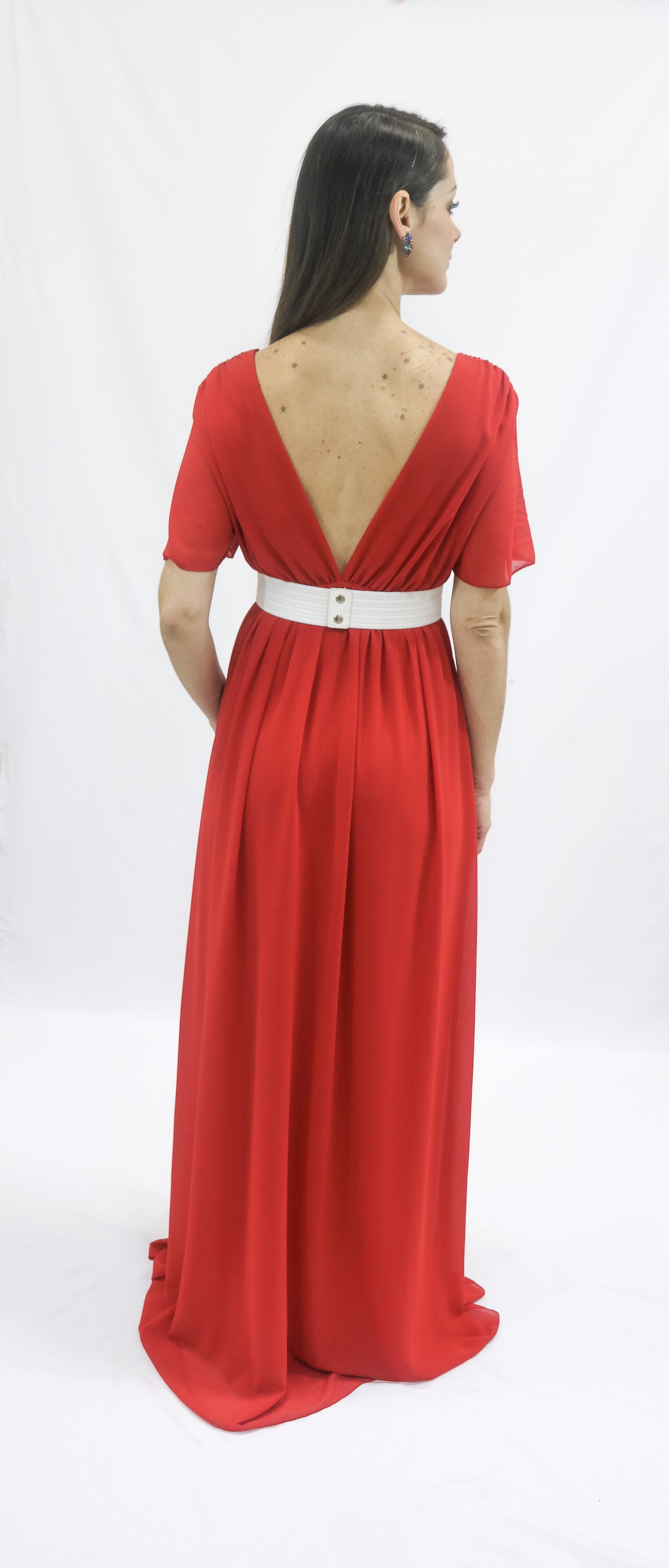 Vestido Miss Mundo confeccionado en gasa, larga con caída y con goma adaptable a varias tallas: 34-50